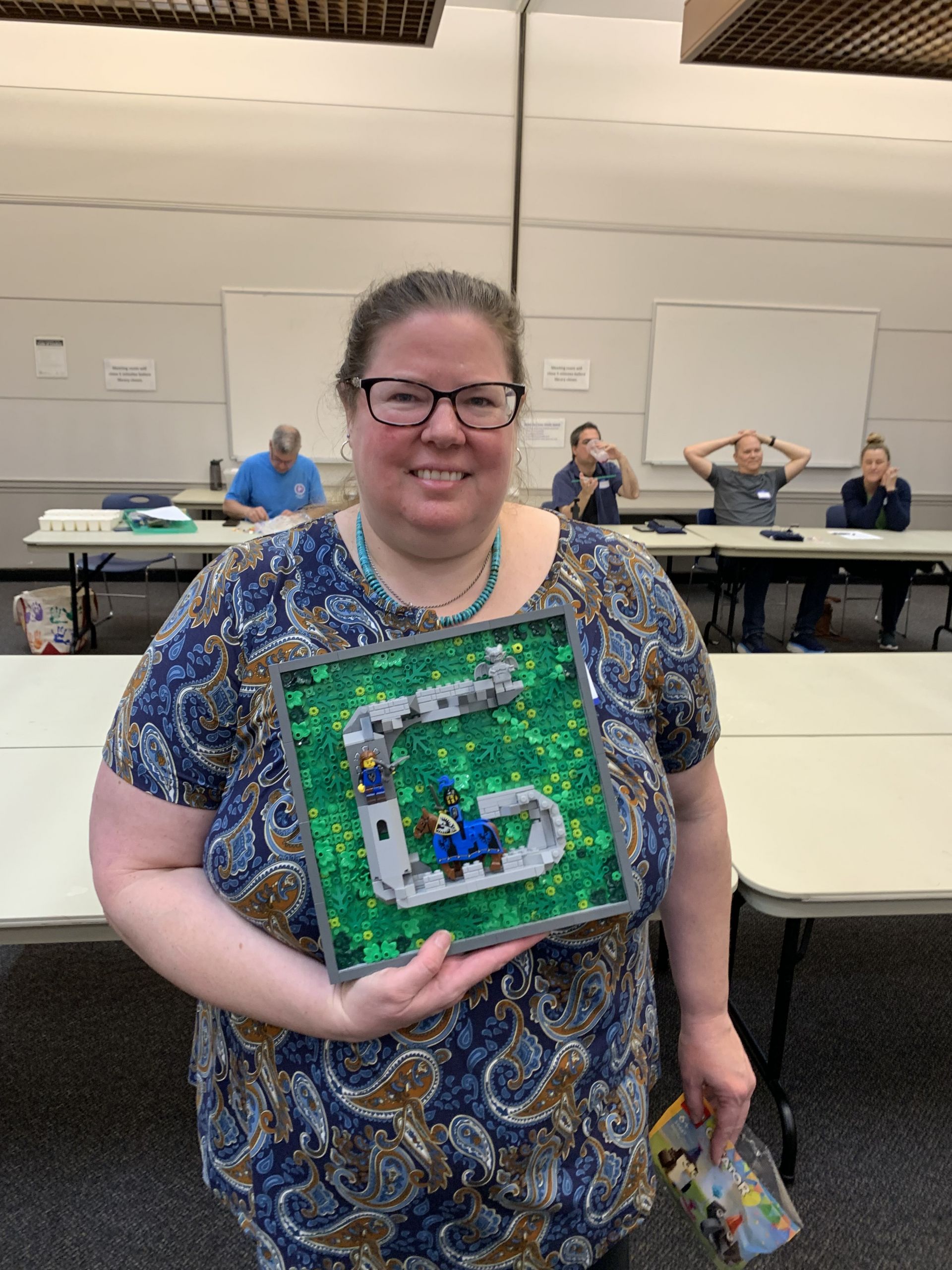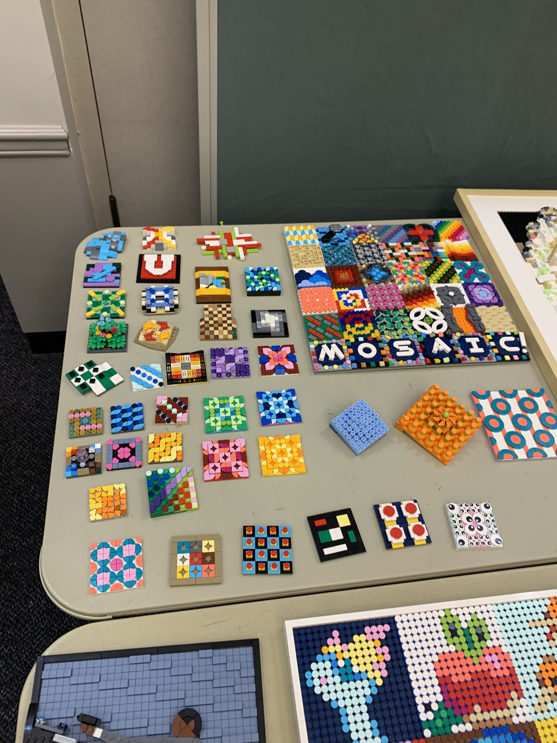 Members brought their awesome mosaics from our May monthly MOC challenge! Thanks to everyone who participated and congrats to our theme winners! Jeff B. for LEGO Theme, Dallas G. for NOVA-LUG letters, and Andrew M. for LEGO Tile recreation.